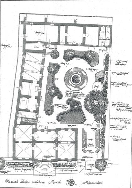 Kossuth szülőházának felújításához megterveztük az utcai főhomlokzat koszorúzó helyét, az új kerti fakaput, az udvaron szökőkutat. Józsa Miklós növénynemesítő "hazafias kötelezettségvállalásának" eredményeképpen növények kiültetésére is sor kerülhetett. A fák azóta is jól érzik magukat. |
